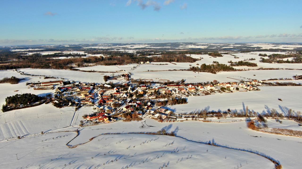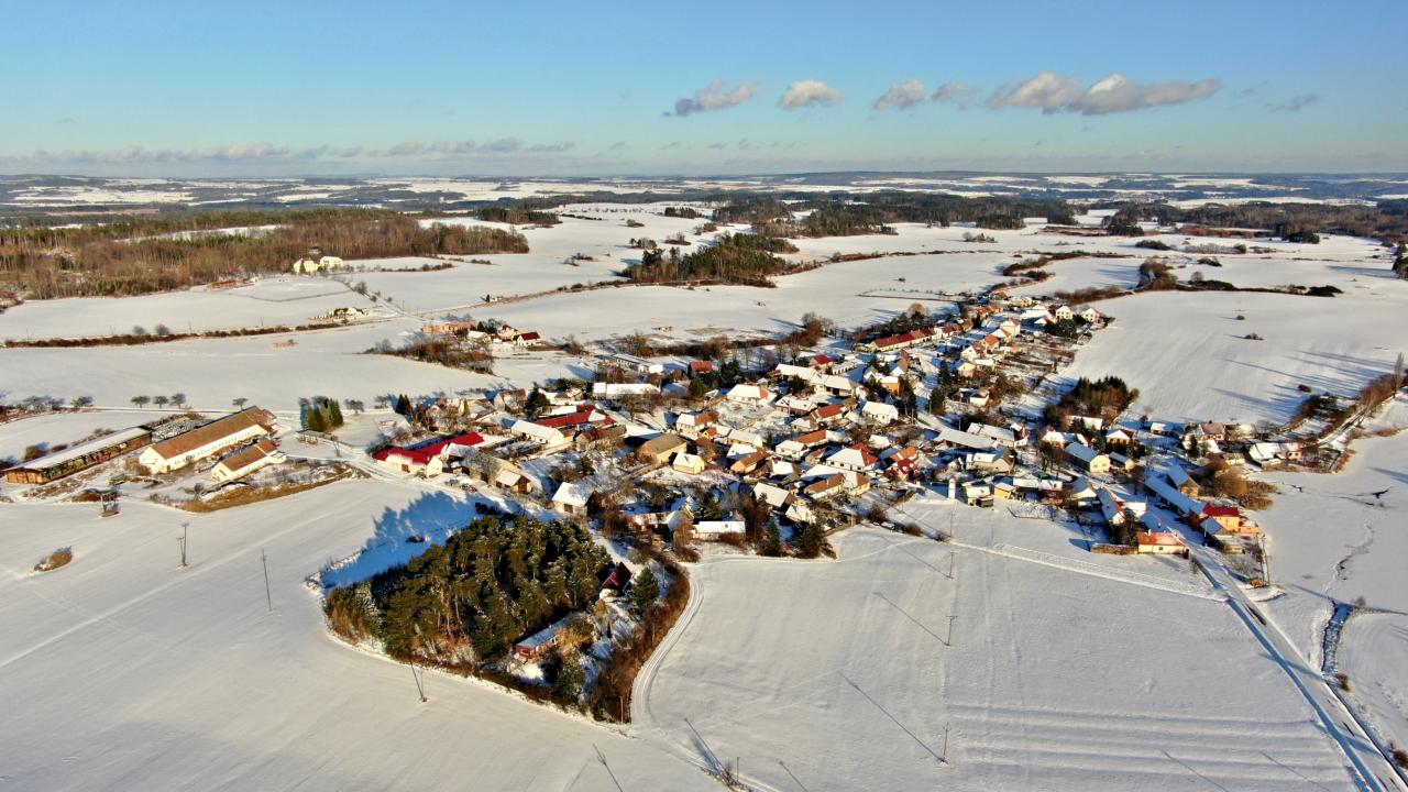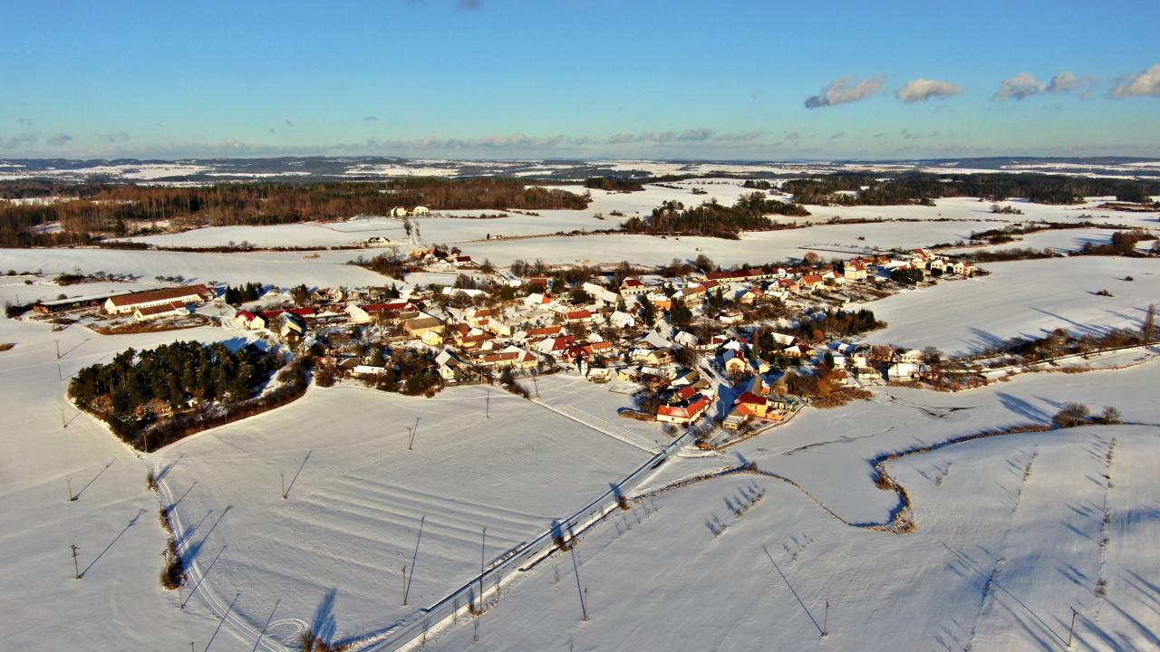Zasněžený Pozďatín od jihu, od západu, od .........